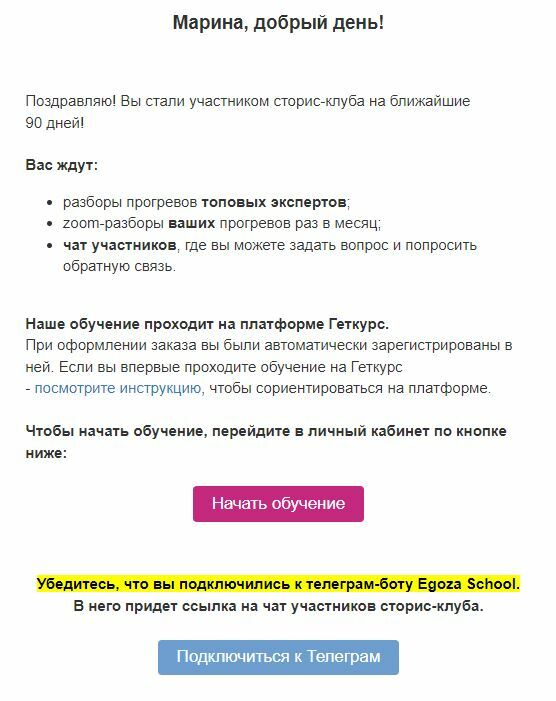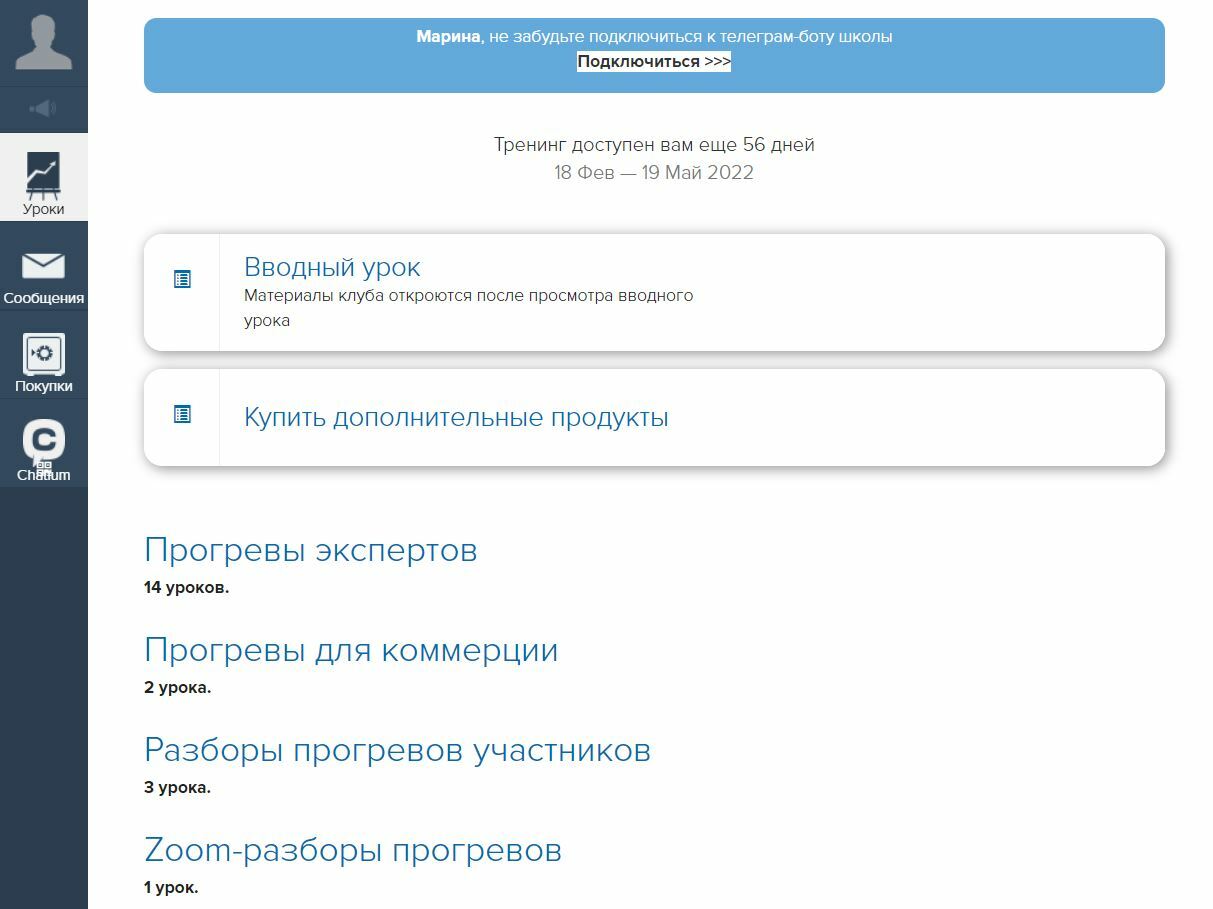 У Евгении уже существовала школа на Геткурс, и базовые настройки платформы были сделаны (подключен домен, прием платежей, настроена почта и бот в телеграм)